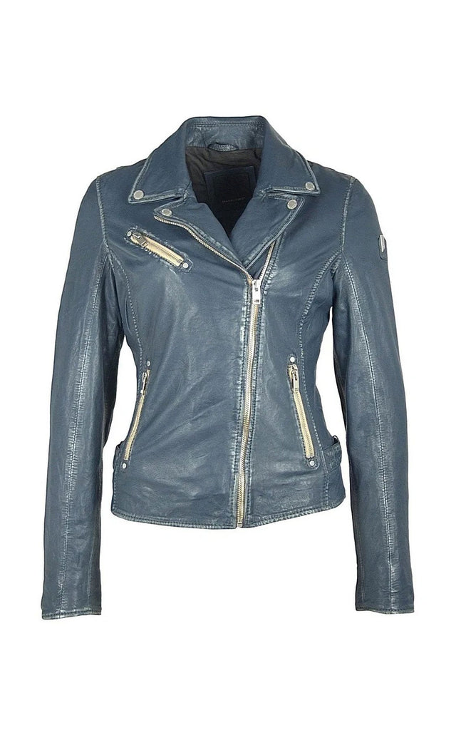 Made of 100% lambskin, the seams are polished and the zippers are contrasted to give a distressed feel. This jacket is vegetable tanned and ethically produced for the social conscious!
