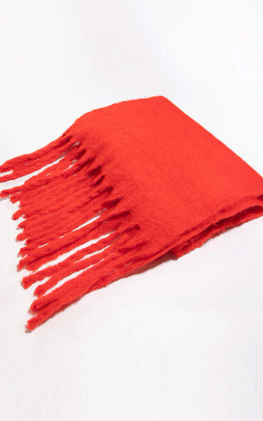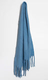 A classic long scarf with a fringe trim that is lightweight and sure to keep you warm on those chilly days